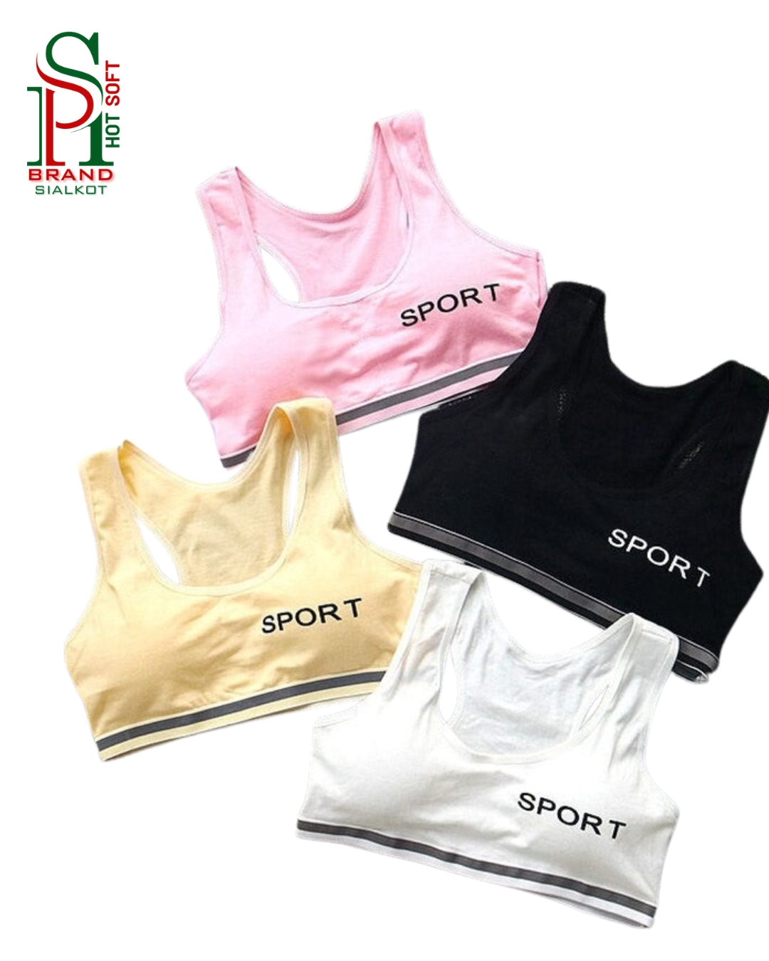 The wide elastic underband ensures a secure fit without digging into the skin, while the moisture-absorbing fabric helps keep you cool and dry throughout the day. Available in multiple stylish colors, this sports bra combines functionality with a modern athletic look.